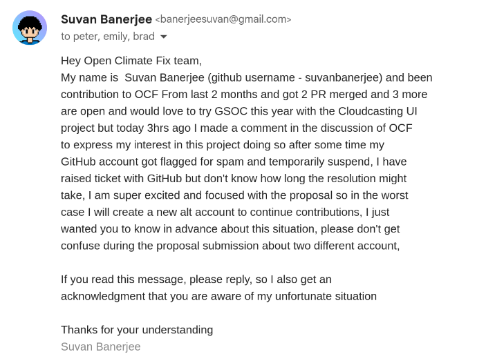 I was like, what the hell is happening?! Apparently, because of my hyperactivity that night, GitHub flagged me as a bot. I emailed the maintainers, explained the situation that was actually my first official message to OCF (though I didn’t get a reply 😂).